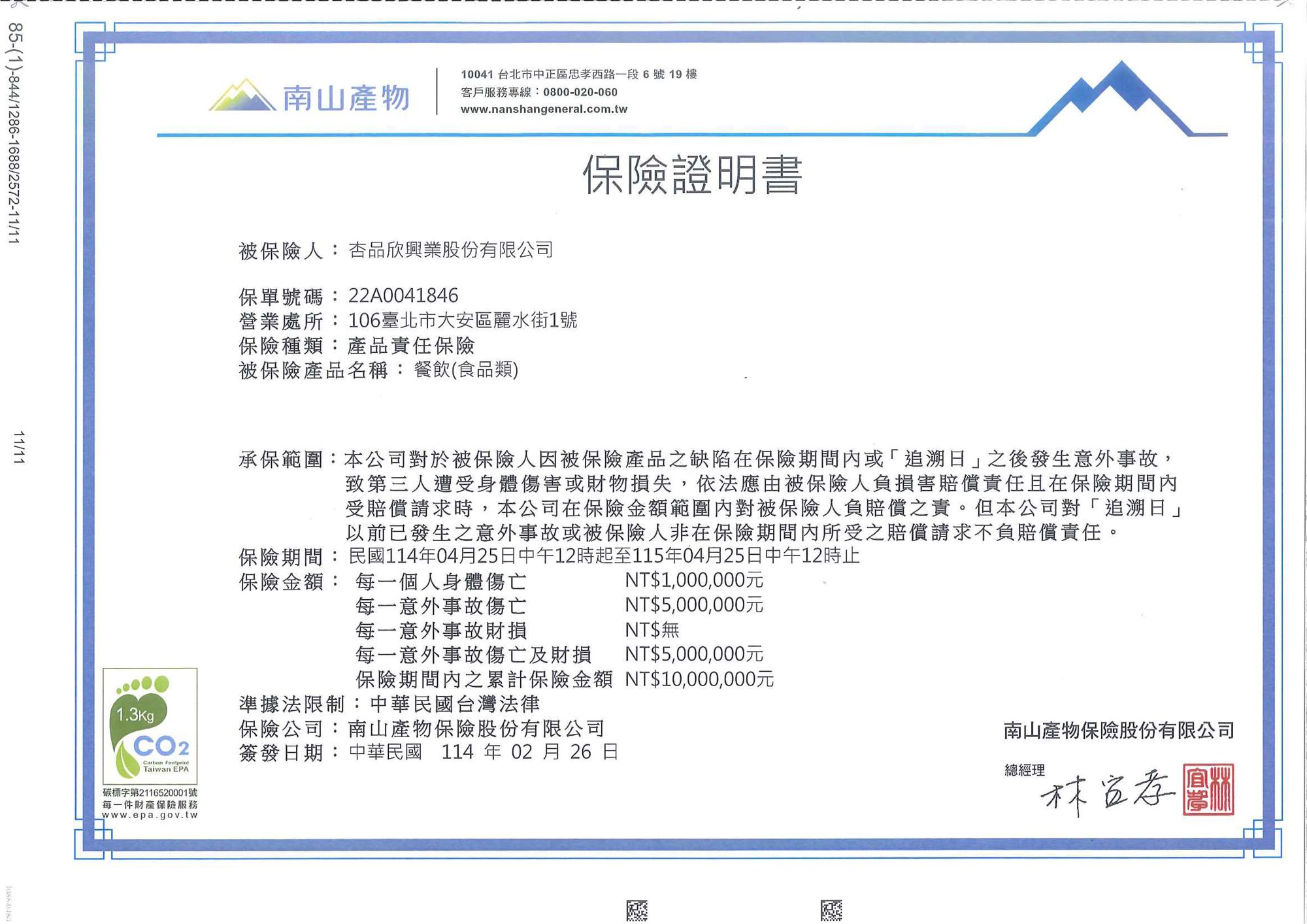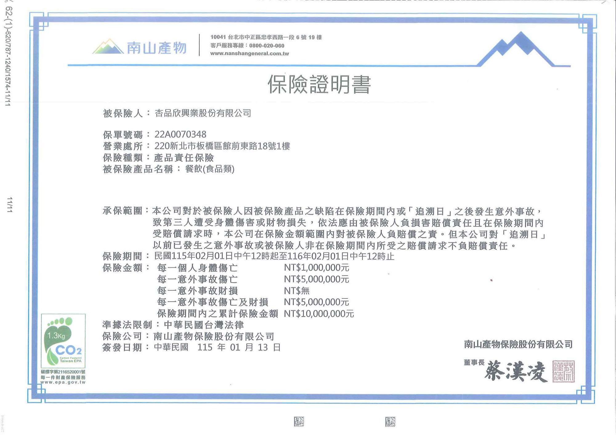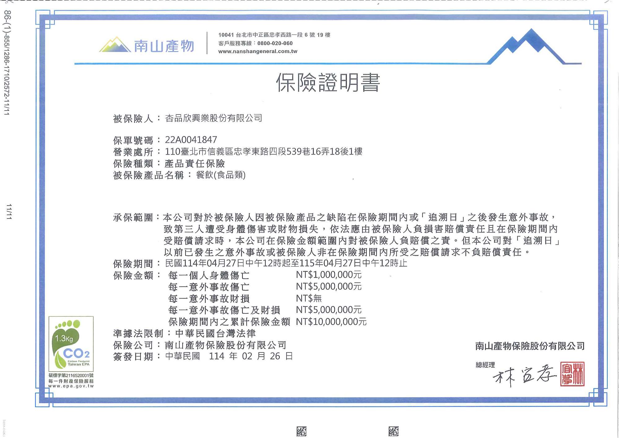 我們重視每一位顧客的健康與安全,提供完整的保險證明
